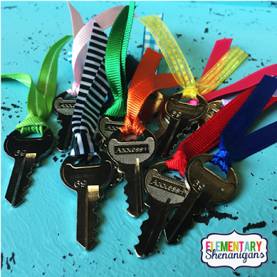 A little key update: I DO NOT give the students an actual key when they earn one in the classroom. I would be replacing keys every single month. Instead, I give them a paper key that they have to redeem at the ceremony for their actual key that could potentially unlock one of our locks. I have created a little freebie that I just uploaded to my TPT shop. It contains all of the keys that you will need. A few suggestions: