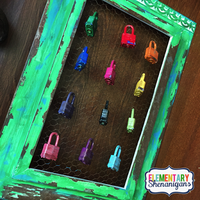 This is super easy to create and use. In short, the kids earn keys {paper keys} throughout the month for different behaviors and achievements. At the end of each month, we have a key ceremony where the students will receive their actual key and have a chance at unlocking their lock. If that lock opens, they get to attend that months reward trip.